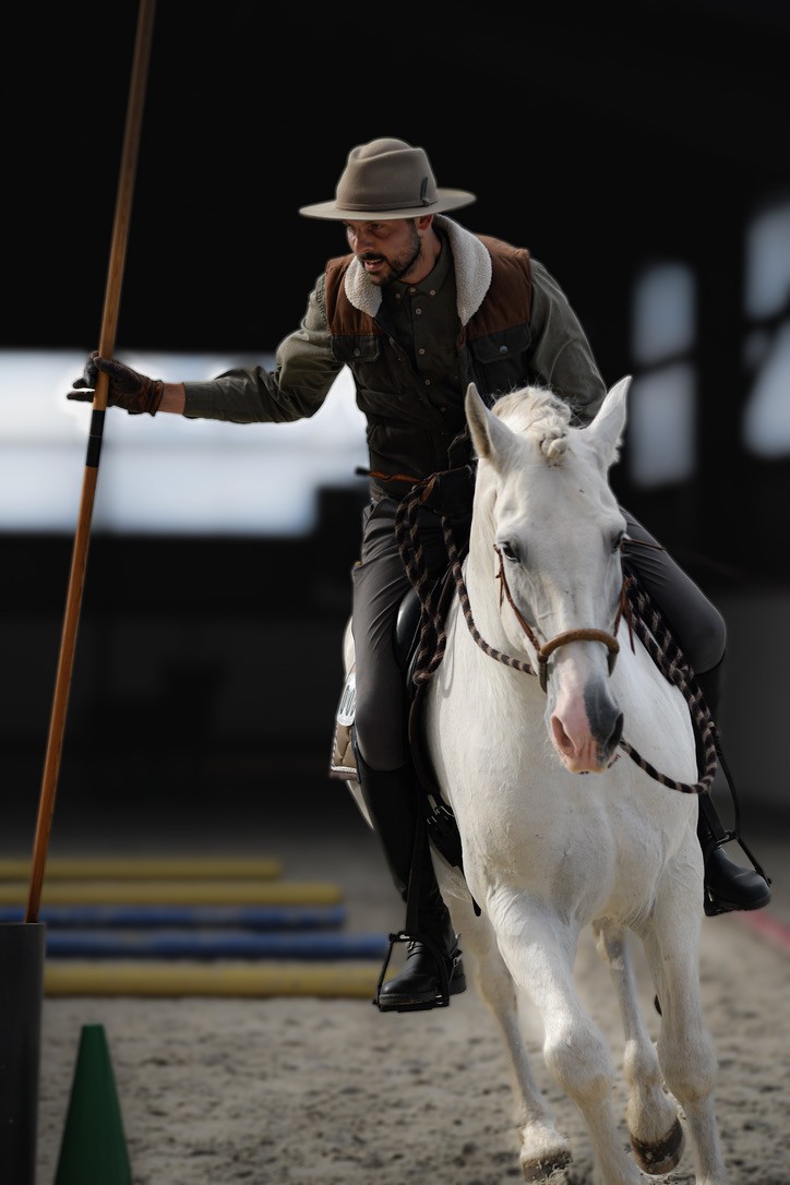 Ich benutze gerne Working Equitation und Extreme Trail Hindernisse, um der Arbeit mit dem Pferd einen konkreten Sinn zu geben und das Gelände oder die Arbeit mit dem Pferd (z.B. an Rindern) zu simulieren. Das Pferd lernt bei den ersten Malen im Trail, sich mit allerlei merkwürdigen Dingen auseinanderzusetzen, sie zu berühren, zu umrunden, klappern, klingeln und klonken als etwas völlig normales kennenzulernen und dem Reiter dabei zu helfen Dinge von A nach B zu tragen oder mit einer Lanze einen Ring zu stechen. Wenn ein Pferd Freude daran gefunden hat, ist es spätestens bereit fürs Gelände.