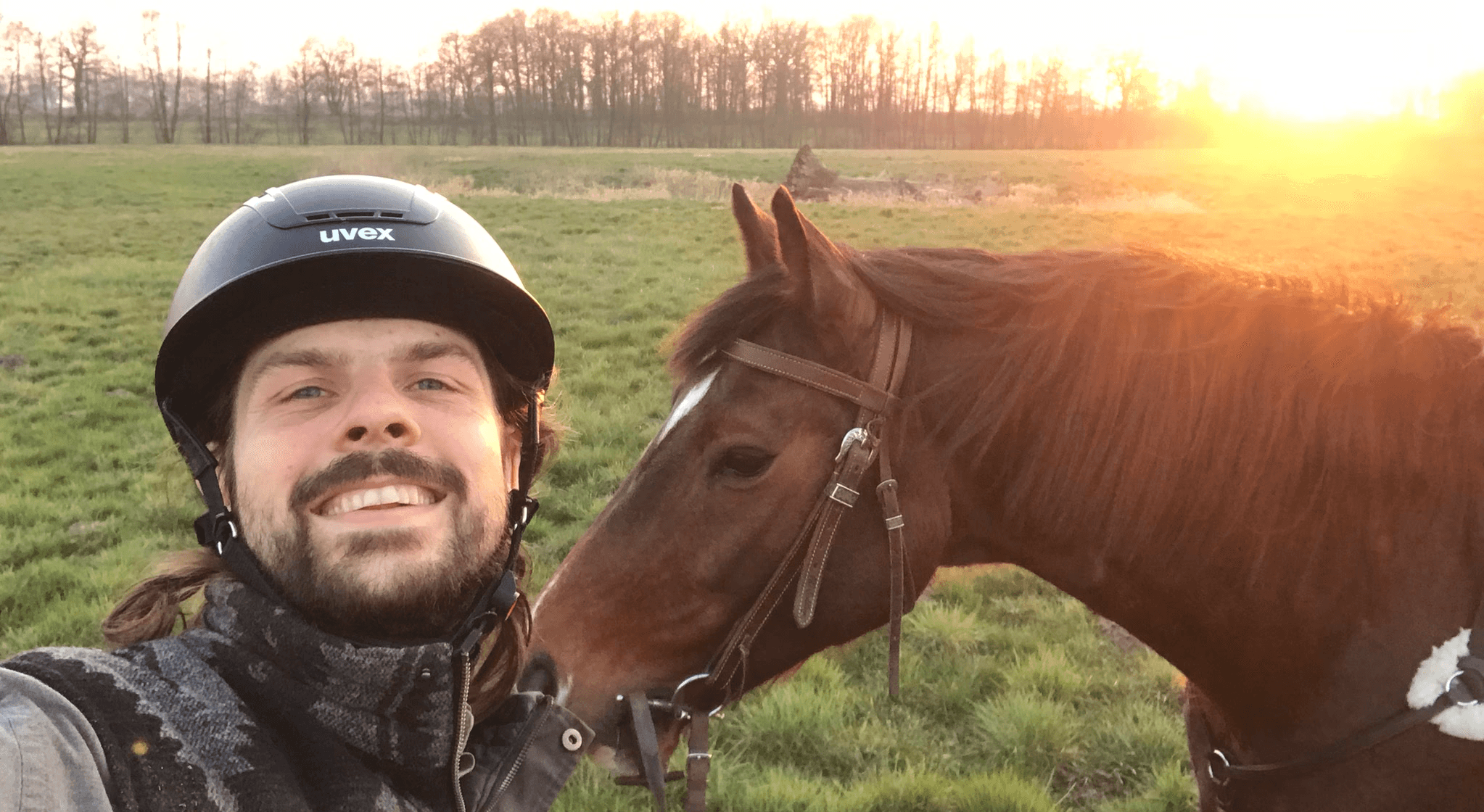 Er genießt Ausritte meist einfach - das strahlt auf andere Pferde ab.
